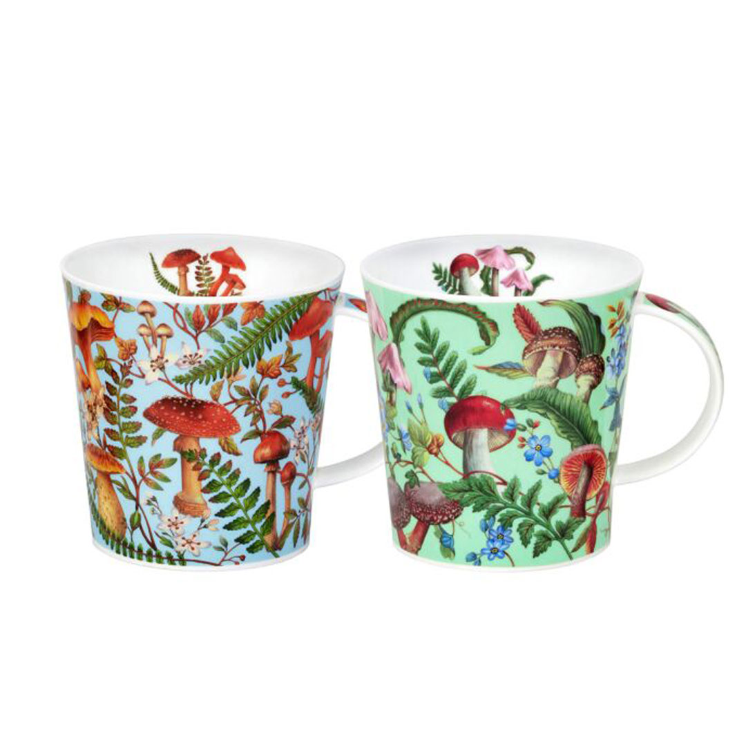 Tento nádherný hrnek je oslavou lesa a jeho skrytého světa. Motiv lesní půdy je zpracován do nejmenšího detailu – jemné houby, zelené kapradiny, listy a luční kvítí se rozprostírají na jemně modrém podkladu a vytvářejí harmonickou, přírodní kompozici.