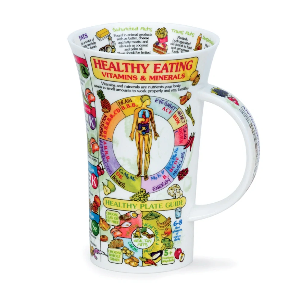 Pro všechny co mají rádi zdravý život a zdravý životní styl máme v naší nabídce jedinečný anglický hrnek s objemem 0,5l s motivem zdravé stravy a zdravého stravování vůbec.