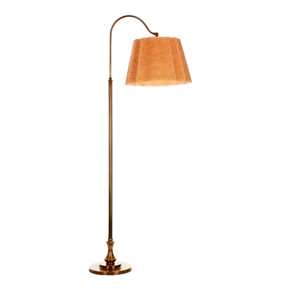 Stojací lampa s pergamenovým širmem.