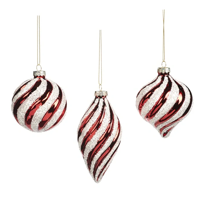 Pruhovaná vánoční ozdoba. Klasická vánoční ozdoba s pruhy červená a bílá.