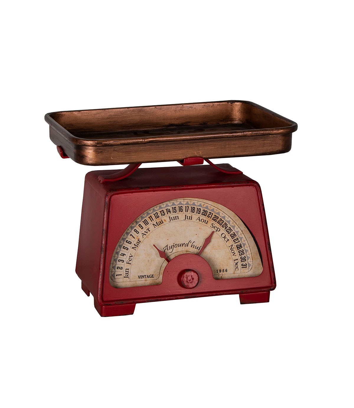 Retro kalendář stará váha má neskutečné kouzlo jedinečnosti. Krásná kovová dekorace v retro stylu, která napodobuje straou váhu a obrazně váží Váš čas. Jedinečný kousek nejen do Vaší kuchyně.