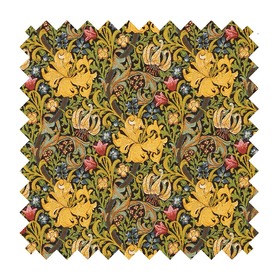 Luxusní čalounická látka zlaté lilie je tkána na žakárových stavech z pečlivě vybraných přízí zkušenými řemeslníky. Díky tomu se vyznačuje vysokou kvalitou, odolností a sofistikovanou strukturou, která dokonale doplní jak historické, tak moderní interiéry.