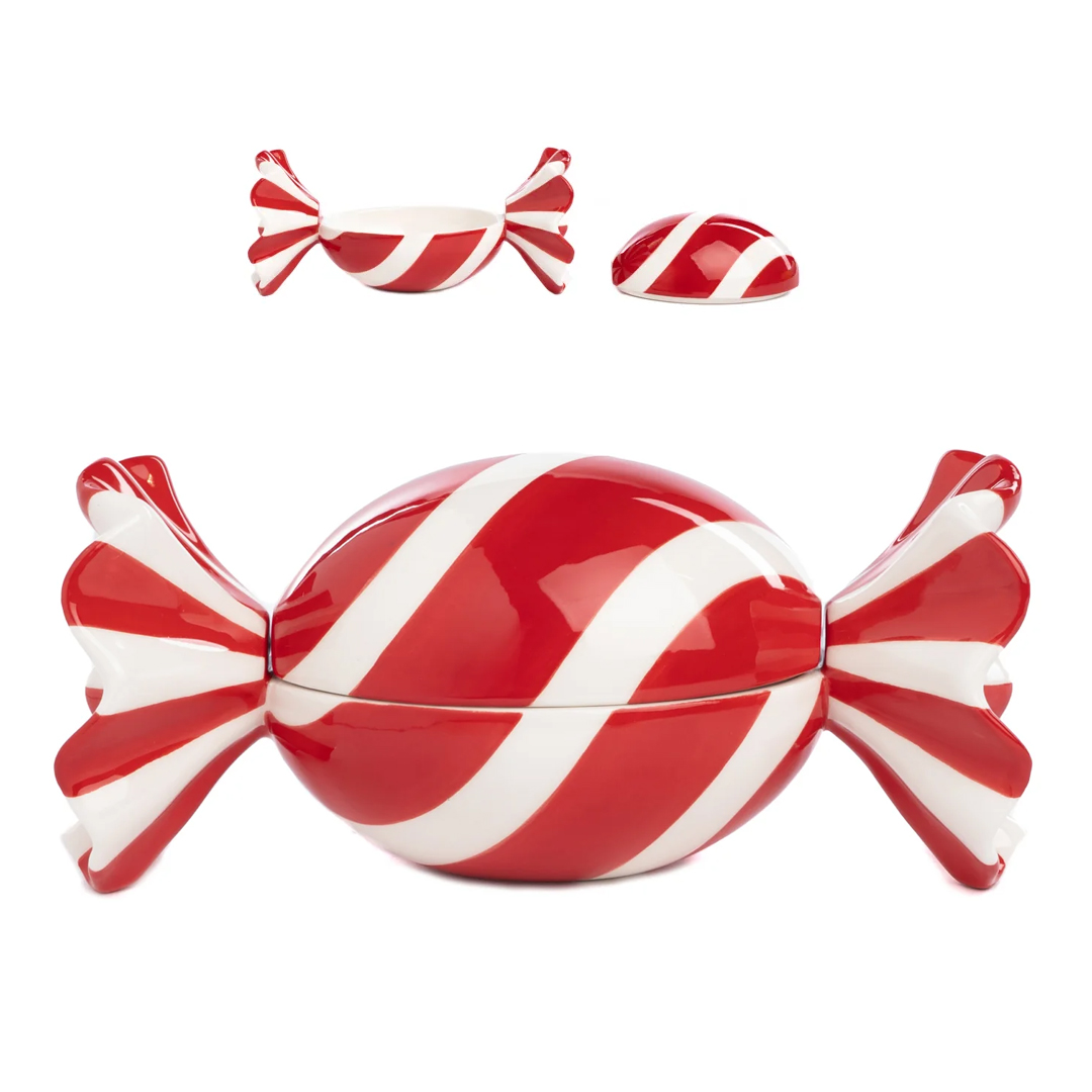 Krásná vánoční dóza s klasickými červenými pruhy. Odnímatelné horní výko.