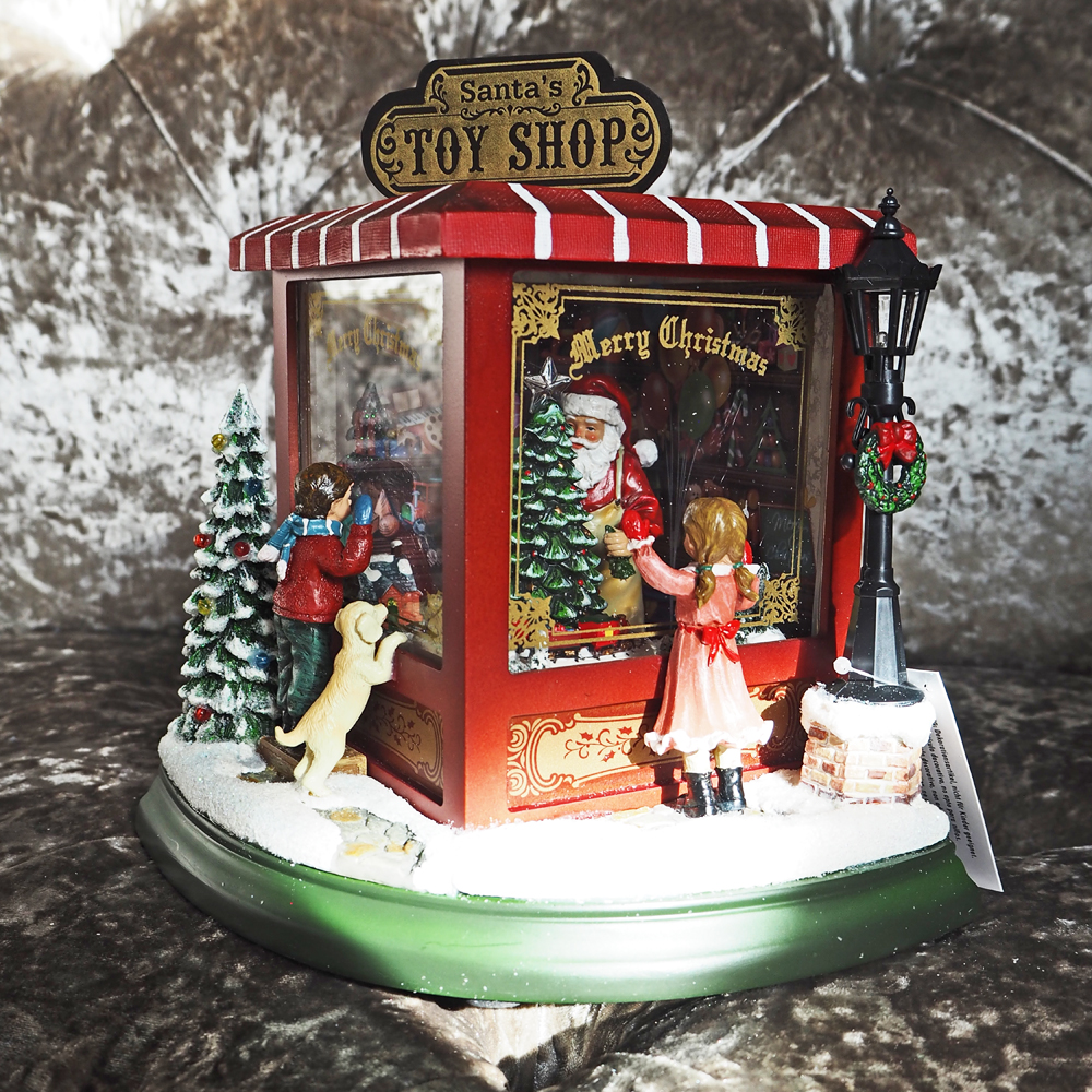 Krásný vánoční obchod je nádherně udělaná hrací skříňka. Zažijte atmosféru klasických vánoc díky těmto dekoracím. Po vložení tří baterií AAA se rozsvítí lampa a obchod ožije. Světlo uvnitř obchodu má krásnou barvu a vlak včetně stromečku se roztočí. K vidění i v našem obchodě.
