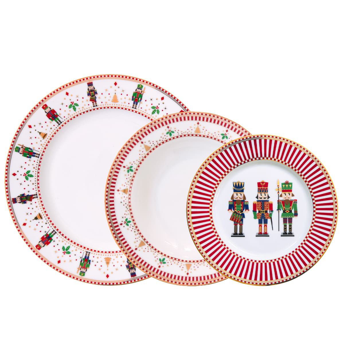 Sada tří talířů s motivem louskáčka. Nádherně vyobrazeno. Vánoční jídelní souprava. Je možné přikoupit mnoho dalších doplňků.