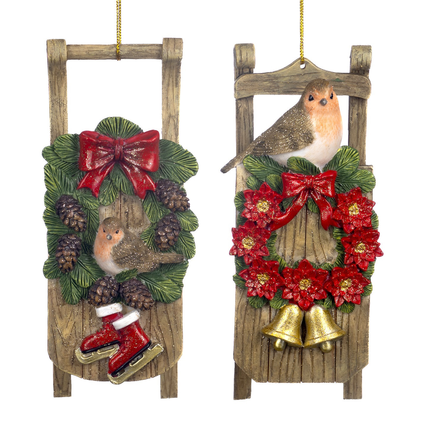 Vánoční ozdoba s červenkou, vánočním věncem a sáňkami, velikost cca 20 cm. Uvedená cena je za kus. Do poznámkyprosíme připište, které jste si vybrali.
